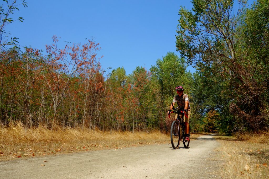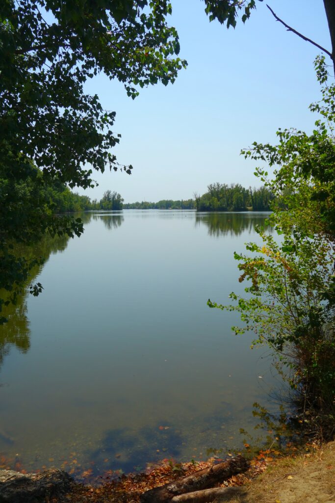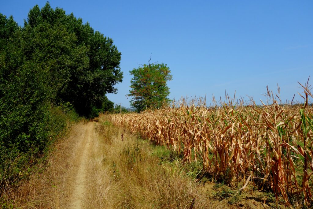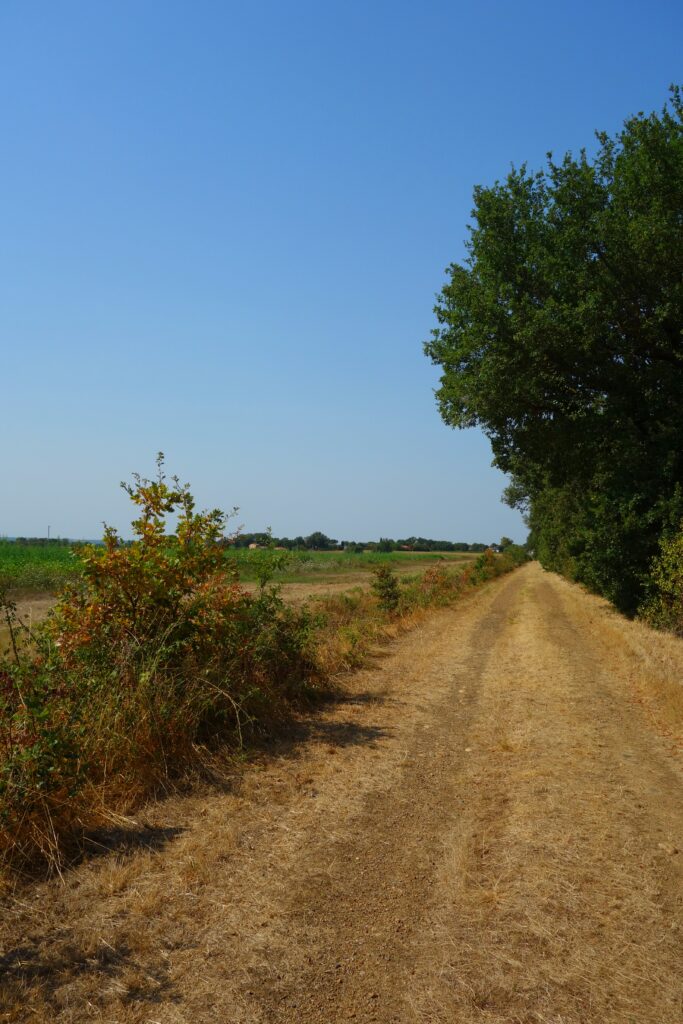 Quelques jolis passages Gravel sur l’itinéraire : le long du Girou, les bois de Lapeyrouse-Fossat, la belle piste blanche qui remonte à Montberon depuis la vallée du Girou, le long de l’Hers entre Castelginest et Bruguières, le lac du Bocage (infesté régulièrement de cyanobactéries), les bords de Garonne et la passerelle vélo-piétonne de Seilh, les bords de l’Aussonelle, quelques chemins ruraux vers Grenade, la très jolie confluence Save-Garonne (au sujet des confluences, la définition de l’affluent tient au débit de deux cours d’eau concernés, il paraîtrait que c’est la Seine qui serait affluent de la Marne et non l’inverse …), de beaux chemins ruraux, certains balisés vers Launac, Larra, Saint-Paul-sur-Save. Là, j’ai voulu suivre un autre chemin que de passer à Notre-Dame d’Alet pour basculer sur la plaine garonnaise, j’ai un peu prospecté et ai trouvé mais en étant obligé de rouler un peu sur la départementale D17, Route de Grenade, assez fréquentée et roulante. Et à Daux, comme le tonton s’appelle De Serres, j’ai suivi le Chemin de Serres (il n’est pas très long) avant de terminer la balade vers Aussonne.