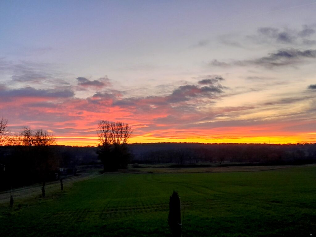 Et toujours de belles couleurs dans le ciel matin et soir mais je passe trop tôt dans les deux cas …